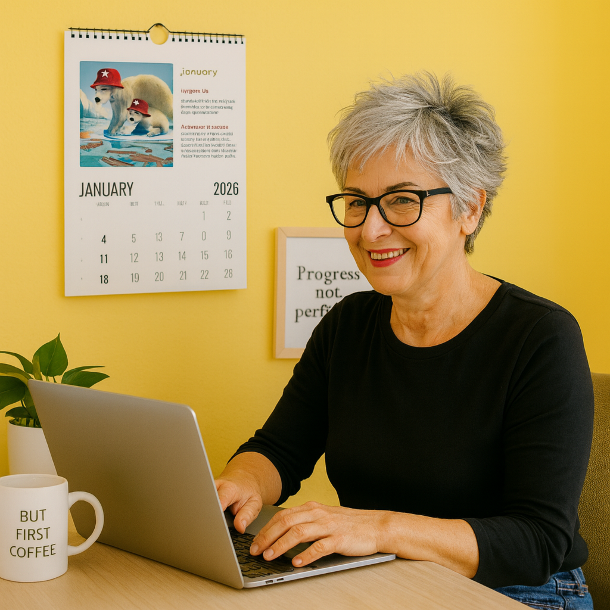 You adore Tilly - a curious little polar bear with her iconic red toque and endless love for Canada. She has a soft spot for grandmothers, aunties, and women who still find satisfaction in the simple, perhaps old-fashioned ritual of turning a calendar page … that quiet, satisfying pause before a new month of possibilities begins. It’s for those who’d rather hang a story-filled keepsake on the wall than rely solely on a digital reminder.